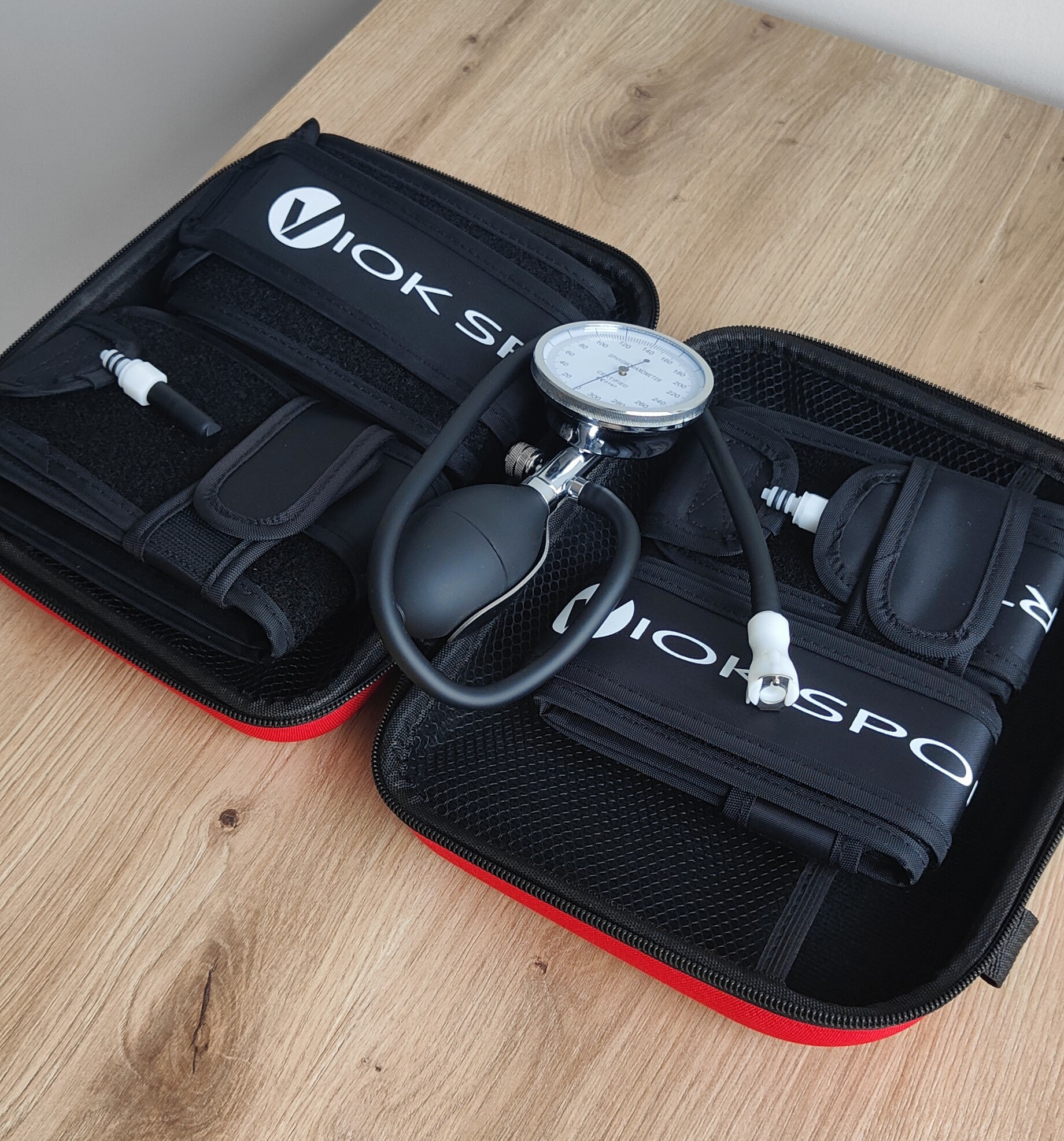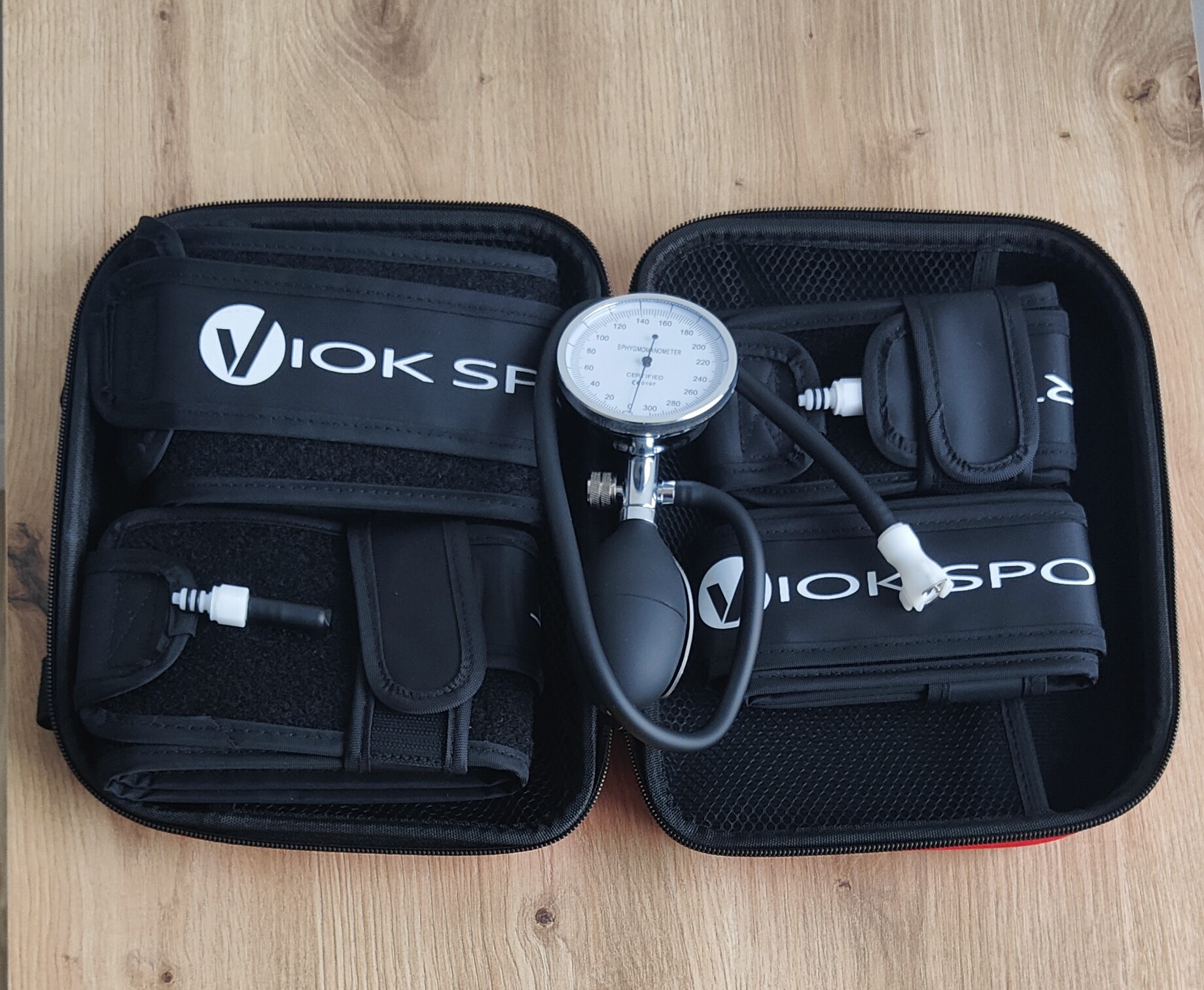 Dispositivo de restricción de flujo sanguíneo, orientado a la disminución de la cantidad de sangre en las extremidades durante el entrenamiento con el objetivo de generar una adaptación muscular notable sin la necesidad de aplicar cargas altas, ideal para procesos de recuperación de lesiones.